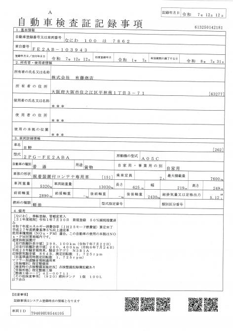 日野 アームロール 令和1年式 2PG-FE2ABA