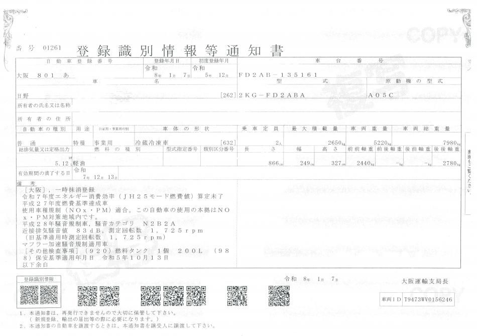 日野 冷凍バン 令和5年式 2KG-FD2ABA